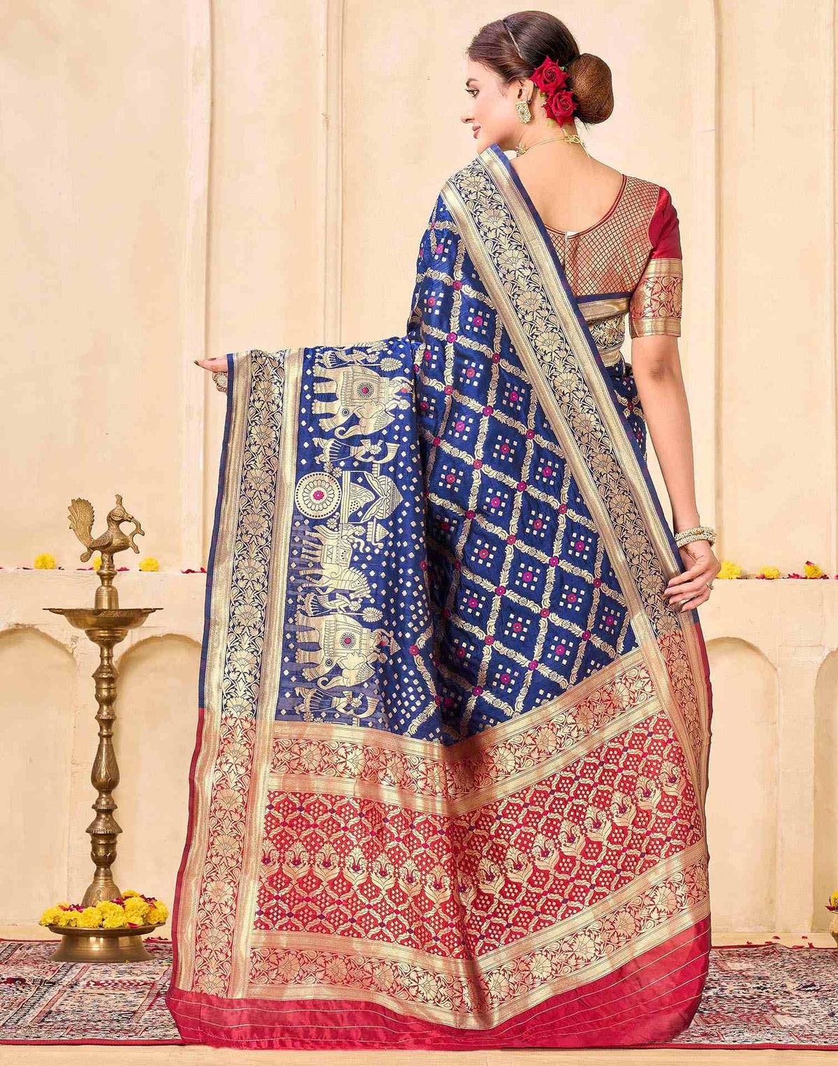 Royal Heritage Banarasi Silk Saree - Navy Blue & Red Banarasi Silk Saree